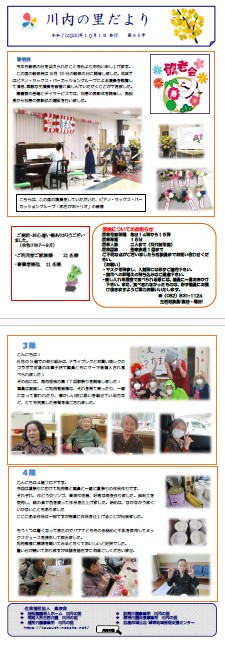 川内の里では、施設の活動やご利用者様のご様子をお知らせするために、3ヶ月毎に「川内の里だより」を発行しています。